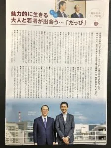 岡山トヨタ自動車株式会社さんが発行されている『岡山トヨタコミュニケーションマガジン』にて、代表理事・柏原が岡山トヨタ自動車の梶谷俊介社長と対談させて頂きました!