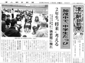 2月21日(水)に開催した加茂中学生だっぴの模様が、津山朝日新聞と山陽新聞(作州版)に掲載されました!