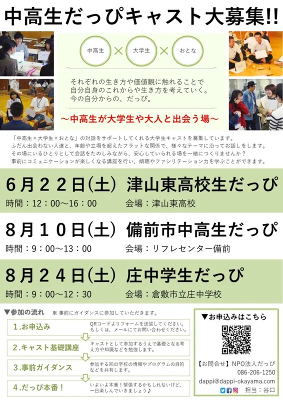 今年度も、岡山県内約20校の中学校・高校で「だっぴ」を実施いたします。
