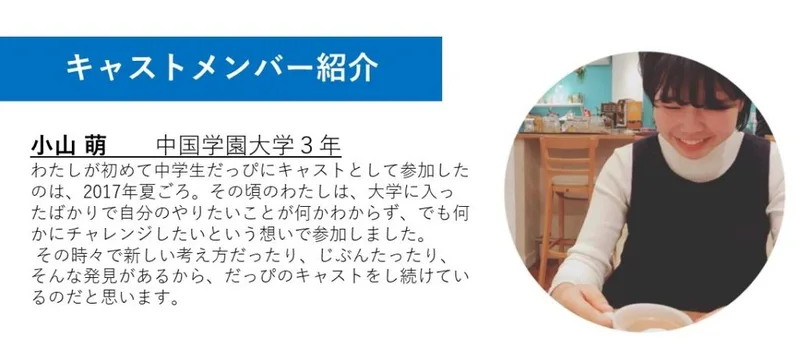 ・人見知りで恥ずかしがり屋だった自分から、だっぴできたなと思いました。